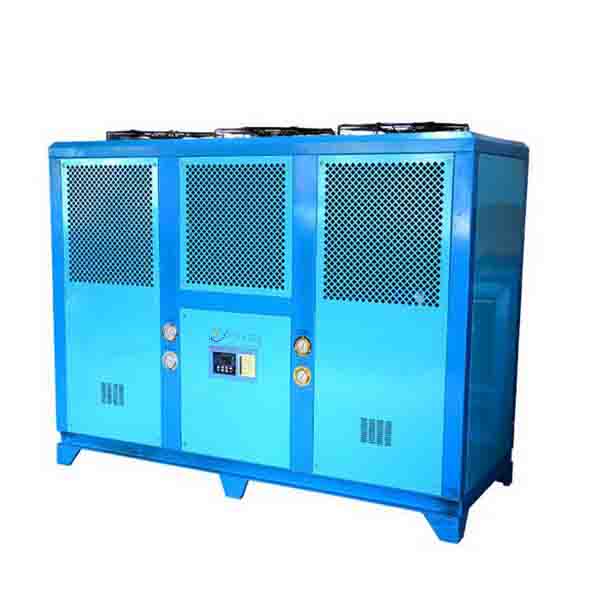 風(fēng)冷式工業(yè)冷水機(jī)一般為整體機(jī),及蒸發(fā)器、壓縮機(jī)和冷凝器做在一起。對于稍大功率的風(fēng)冷式工業(yè)冷水機(jī),則需要考慮其工作時(shí)冷凝器散熱風(fēng)扇的散熱問題。在空調(diào)廠房里應(yīng)用,整體機(jī)需要設(shè)置排風(fēng)道將散熱風(fēng)扇吹出的熱量引到室外。