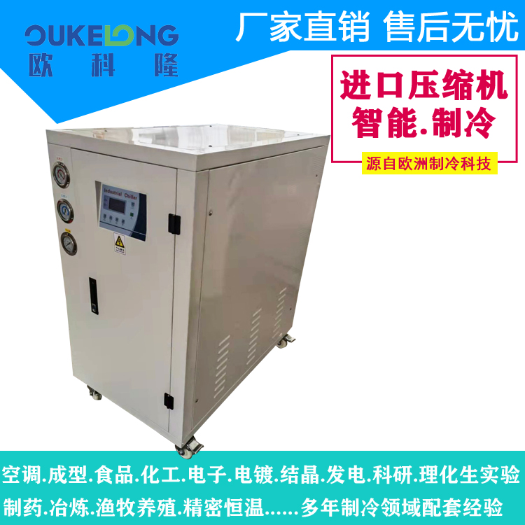 歐科隆制冷水冷箱式冷水機(jī)組詳細(xì)特點(diǎn)介紹.制冷心臟采用全密封低噪音,振動(dòng)小,采用高效能省電國(guó)際著名名牌壓縮機(jī)(美國(guó)谷輪牌,日本三洋,日本大金,法國(guó)美優(yōu)樂(lè)等),電器控制全部采用進(jìn)口名牌原件,熱交換器采用殼管式冷凝器,換熱效能高,便于清洗保養(yǎng)。