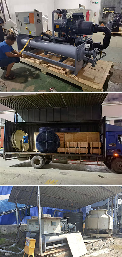 本案為出口到東南亞某國,為注塑廠中央供水系統(tǒng)冷水機組案例。采用兩套60匹水冷螺桿式冷水機組,制作精良,品質(zhì)優(yōu)異深受用戶好評。