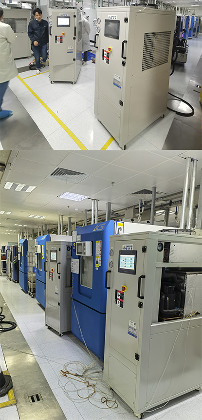 本產(chǎn)品為高低溫測試機組,也叫液冷機和恒溫冷水機。該機型多次配套于國內(nèi)某大型上市公司國資委控股企業(yè),前后采購不下200套。該機組主要特點:精密恒溫恒壓恒流,且溫度壓力流量控制精度均達到行業(yè)超精水準(zhǔn)??販胤秶?/span>零下25℃到零上95℃控溫,多通道可同時帶載多個工件測試,不但恒溫,還有恒壓恒流的特點,且流體壓力流量均自動PID無極調(diào)節(jié)。